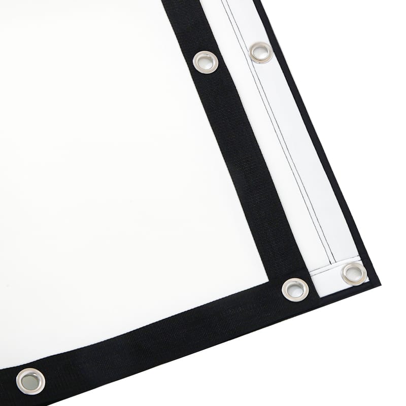Durable black edge binding with metal grommets for secure installation.