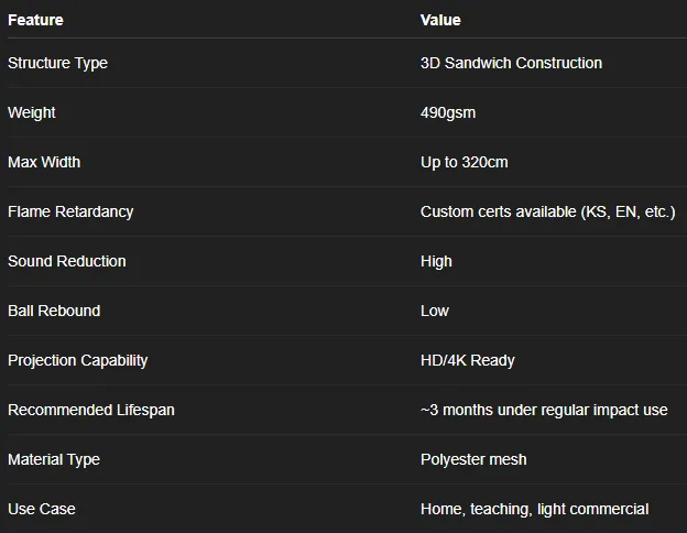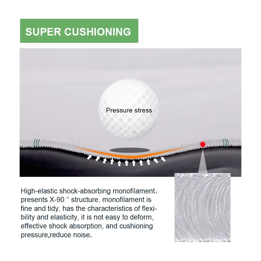 Our screen features a three-layer design: a smooth front surface, a breathable middle cushioning mesh, and a reinforced backing. This 3D sandwich structure distributes impact force, reduces stretching, and offers excellent durability—even under repeated ball strikes.